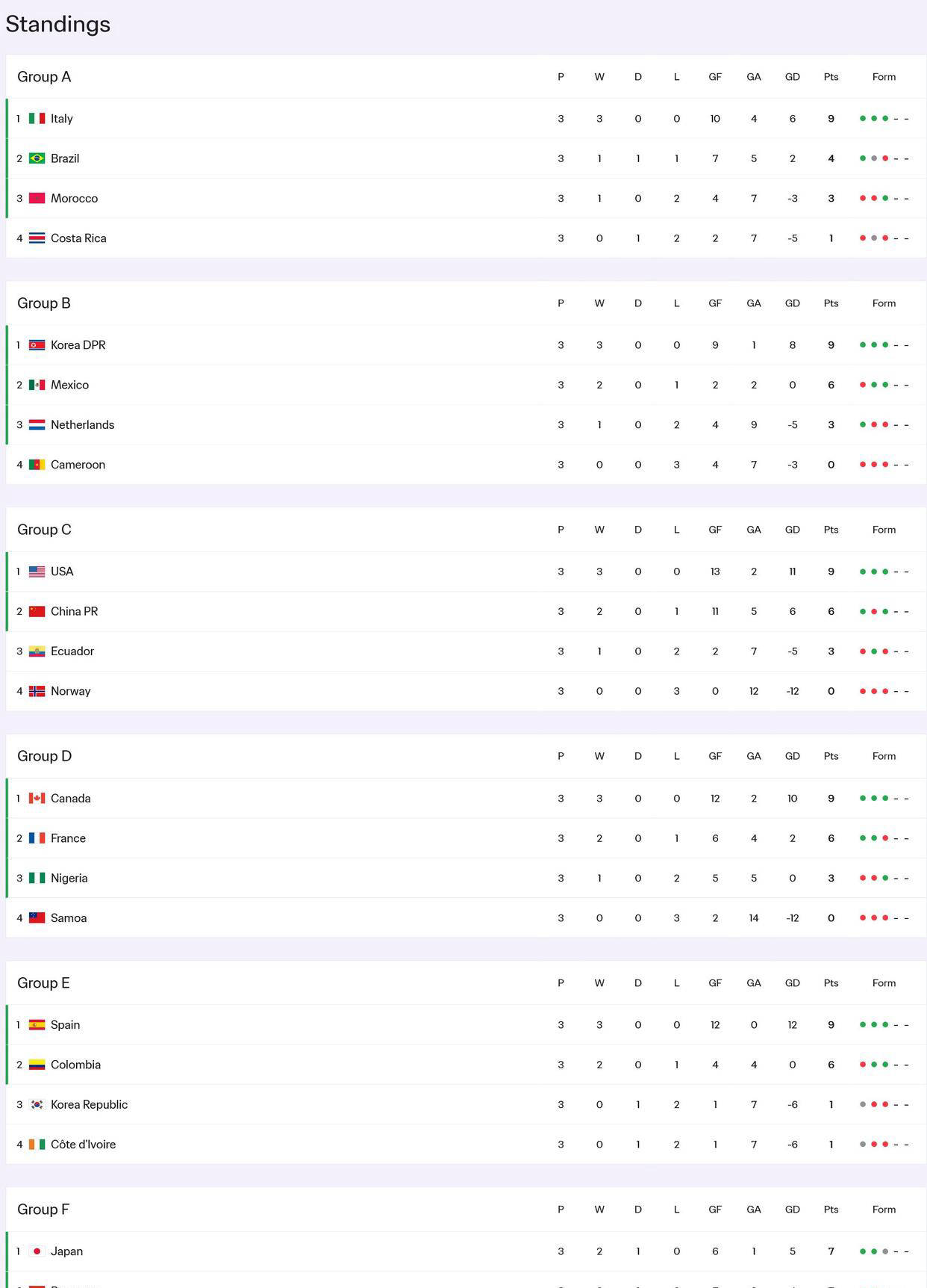 日本队以2胜1平的成绩名列小组第一,成功晋级16强;中国队屈居小组第二,朝鲜队则全胜晋级,而韩国队在1平2负的成绩下无缘晋级,稍显尴尬。