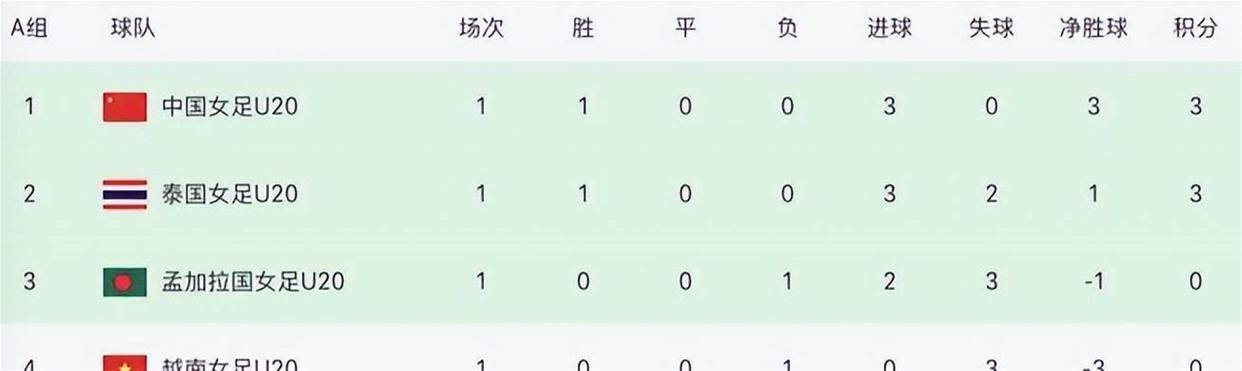 首轮战罢,A组的形势已经明朗。 中国队3-0战胜越南,而东道主泰国队则以3-2的比分险胜孟加拉国。 这样一来,中国队和泰国队同积3分,但中国队凭借3个净胜球的优势,暂时排在小组第一。 根据本届U20女足亚洲杯的规则,12支球队分为3个小组,每个小组的前两名,以及两个成绩最好的小组第三名,将获得晋级八强淘汰赛的资格。 更进一步,在四分之一决赛中获胜的球队,将直接获得2026年在波兰举行的U20女足世界杯的参赛门票。 因此,击败孟加拉国,积分达到6分,将确保中国队至少以小组前两名的身份出线,提前完成晋级八强的第一步目标。