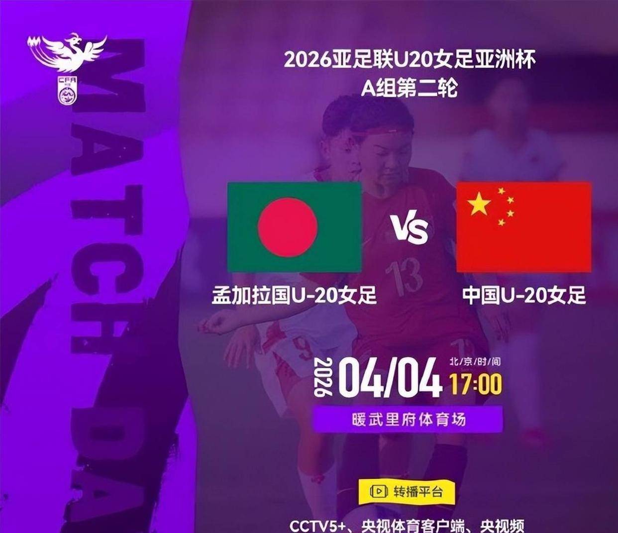 三天后的北京时间4月4日17点,同一块场地泰国暖武里府体育场,中国U20女足将迎来小组赛第二个对手,孟加拉国U20女足。 这场比赛将通过CCTV5 、央视体育客户端、咪咕视频、爱奇艺体育等多个平台进行直播。 对于中国队的姑娘们来说,这不仅仅是一场普通的第二轮小组赛,更是一场只要取胜就能提前一轮锁定八强席位的“出线之战”。