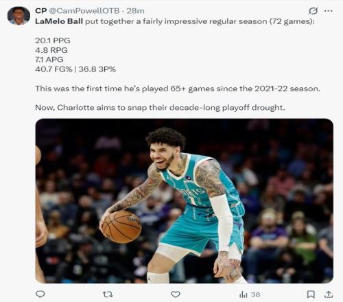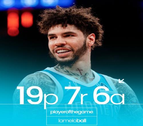这场比赛拉梅洛-鲍尔29分钟,19中7,三分16中5,拿到19分7篮板6助攻2抢断5失误,命中率36.8%,三分命中率31.2%,说实话表现很一般。