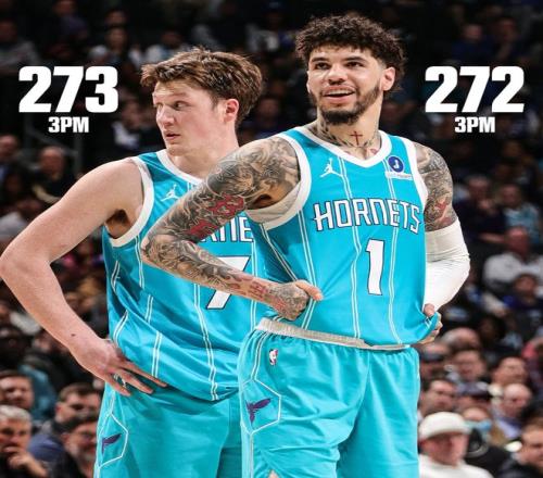 本赛季三球272个三分+克努佩尔273个三分,他们成为历史第二对单赛季都命中270+三分的队友比肩库里/克莱,本赛季黄蜂有三位球员至少命中200+三分(鲍尔、克努佩尔、米勒)历史第四队。