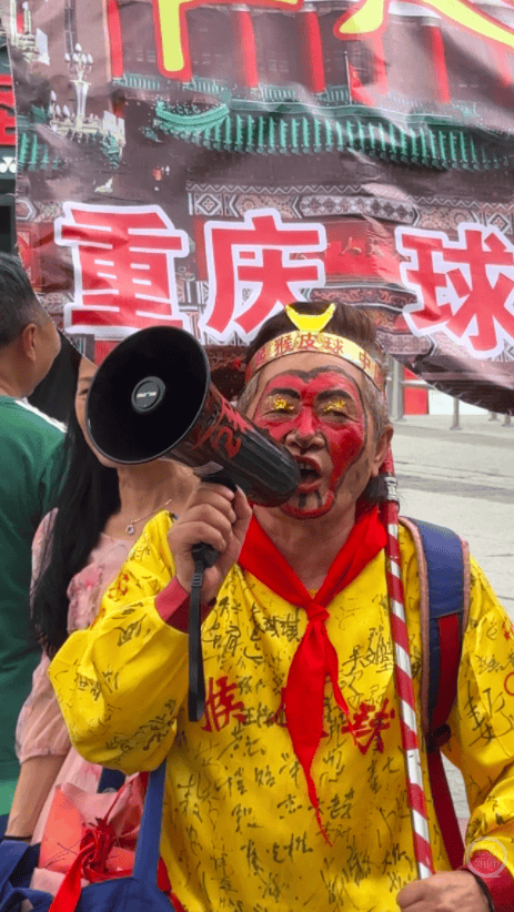 在人潮涌动的“渝超”各赛场外,有一个人的身影格外引人注目。他身着鲜亮的黄色猴王服,系着虎皮裙,戴紧箍咒,一身孙悟空妆造,举着写有“渝超足球雄起”的芭蕉扇,总能吸引众多球迷和市民的关注,他就是重庆知名球迷“猴皮球”。