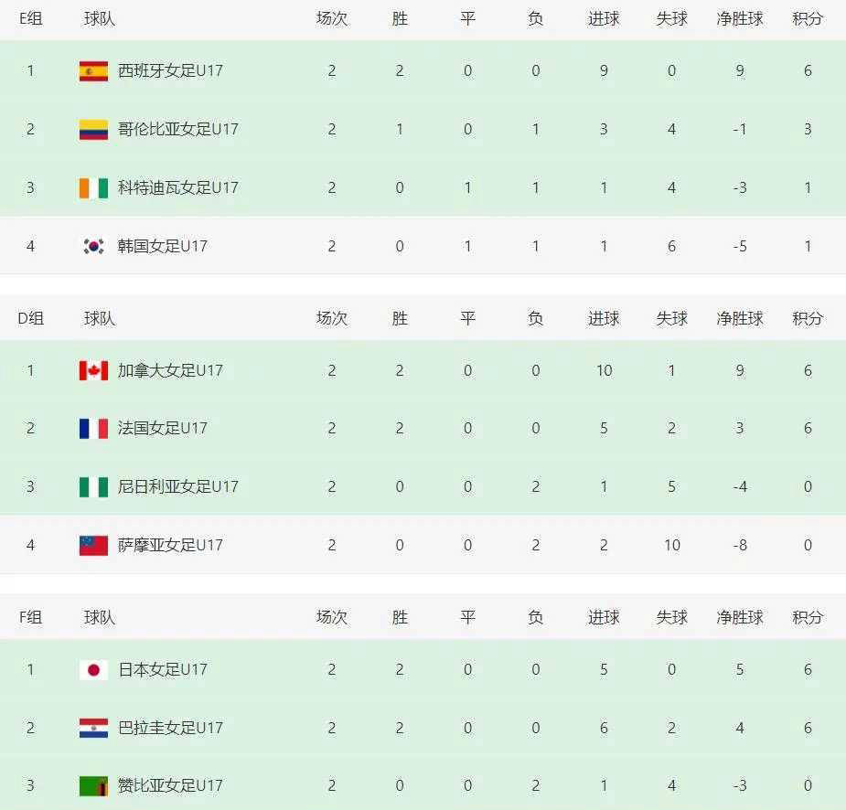 然而在净胜球方面,D组的尼日利亚-4,萨摩亚女足-8,E组的赞比亚-3,新西兰女足-6。