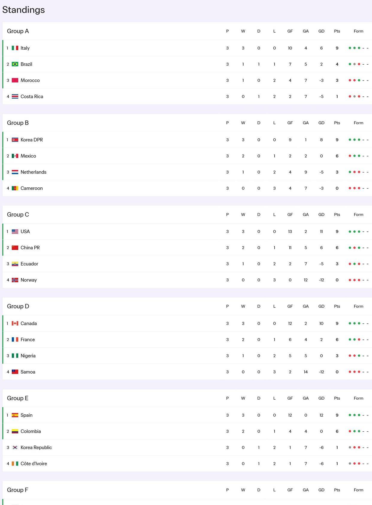 朝鲜队的表现堪称统治级。 三战全胜,进11球失0球,包括末轮5-0横扫荷兰——这支神秘之师用战绩宣告了争冠野心。 相比之下,西班牙3-0科特迪瓦、加拿大2-1法国等比赛结果,反而成了亚洲球队集体爆发的背景板。