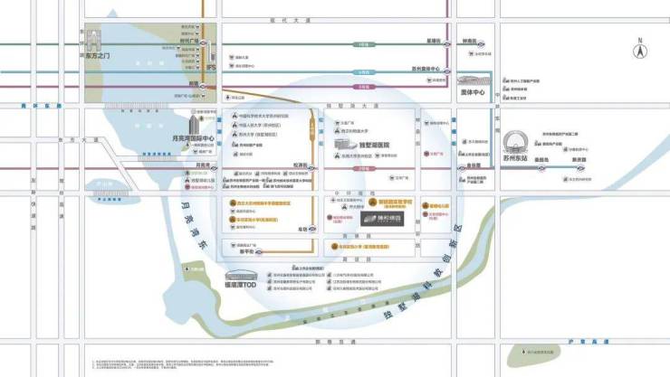 住在月亮湾东,生活有多方便?这里堪称理想生活港湾。板块内规划了7大功能配套,衣食住行医教娱,一站配齐。 交通是最大亮点:正在建设的苏州东站,预计26年底建成,未来自驾约5公里就能到,半小时直达上海,沪苏同城不是梦。家门口还有“两轨五轴”,地铁8号线号线环绕,中环东线、南线等主干道四通八达,园区交通网络非常发达。 商业就在家门口:步行可达文荟邻里中心(年底投用)、规划中的地铁上盖商业和五星酒店。2公里内多个广场、邻里中心,9公里直达奥体永旺、时代广场等核心商圈,满足苏州买房后的一切生活所需。 孩子上学不用愁:对口星湾教育集团朝前路实验学校,是园区直属的九年一贯制公办学校,星湾本部的老师已经过来轮岗教学了,师资力量很强,为改善住区的家庭提供了优质教育保障。 健康有保障:约2公里就是三甲医院独墅湖医院(苏大附一院分院),二期扩建后将是苏州最大。步行400米还有社区卫生服务中心,小病小痛随时看。 休闲娱乐多:独墅湖体育中心、影剧院、白鹭园、教堂都在附近。约2公里还有即将投用的南部市民文体中心,图书馆、书店、政务功能全都有。 环境更没得说:被白鹭园、独墅湖生态公园等约100万方绿肺环绕,南侧还有政府重点打造的吴淞江生态廊道,推窗见绿,下楼逛公园,这正是月亮湾东板块的生态魅力。