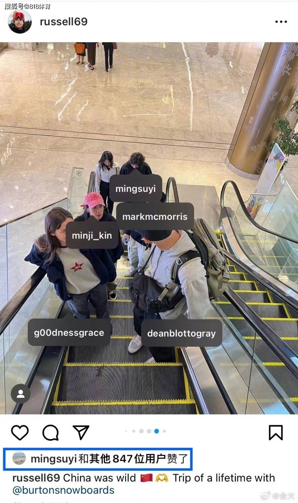 2023年10月,一名外籍滑雪摄影师Russell69在个人ins上更新了一组照片,在一行人上电梯的过程中有苏翊鸣和朱易牵手的照片。