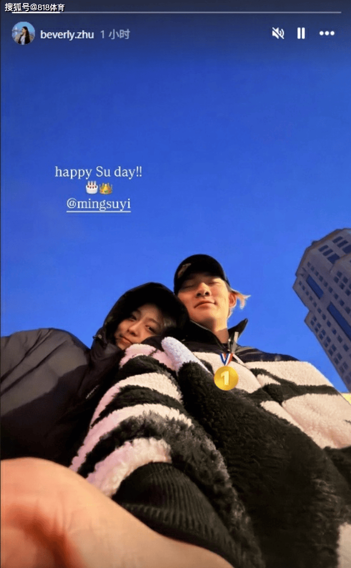 在苏翊鸣夺冠之后,朱易通过社交媒体发布依偎在小苏肩膀上的甜蜜合影,并且配文写道:“Happy Su day(小苏日快乐)!”表达了祝贺之情。
