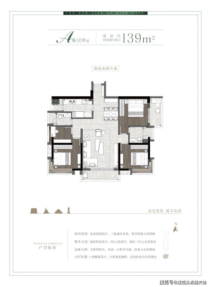 随着二胎、三胎政策的放开,多孩家庭逐渐成为社会的主流。君熙府推出的139㎡四房户型,正是为这类家庭量身定制。该户型采用三面采光设计,确保每个房间都能沐浴在阳光下。配备三阳台和L型飘窗,不仅增加了室内的绿化景观,更提供了充足的休闲空间。值得一提的是,该户型的赠送空间使用率高达114%。这意味着,业主实际使用的面积远超建筑面积,相当于花一份钱,买到了更多的空间。这种高得房率的设计,在多孩家庭中极具吸引力,可以满足父母、孩子以及老人三代同堂的居住需求。每个家庭成员都有独立的休息空间,互不干扰,同时又能在公共区域共享天伦之乐。