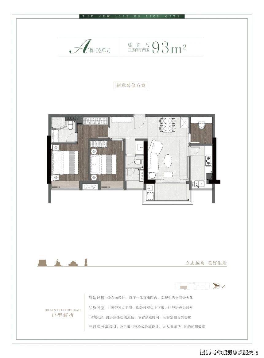 对于刚步入社会的年轻夫妇或单身贵族而言,93㎡的三房户型无疑是最佳选择。该户型采用方正格局,空间利用率高,没有任何浪费的死角。LDKG一体化设计(Living Room, Dining Room, Kitchen, Garden/Balcony),将客厅、餐厅、厨房与阳台融为一体,打破了传统空间的隔阂。这种设计不仅扩大了视觉空间感,更增强了家庭成员之间的互动与交流。在周末的午后,一家人可以在宽敞的客餐厅区域共同用餐、聊天、游戏,享受温馨的家庭时光。对于预算有限的年轻家庭来说,93㎡三房既满足了功能需求,又控制了总价门槛,是性价比极高的入门级改善产品。