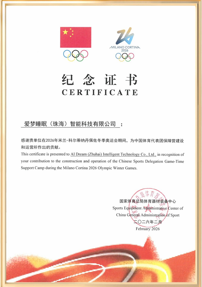 在本次冬奥保障任务中,爱梦集团舒达品牌深入两个核心场景提供专业支持。在作为代表团“坚实后盾”的保障营中,我们为每一位出征的冰雪健儿提供了专属睡眠装备,确保运动员在异国赛场也能获得专业睡眠护航;在仅于奥运期间设立的综合流平台——“中国之家”中,爱梦集团旗下舒达的多款创新睡眠产品精彩亮相。作为展现中国前沿科技与体育精神融合的窗口,爱梦集团舒达品牌以智慧睡眠科技向世界展示了中国品牌的专业风采。