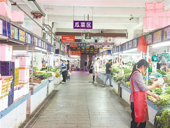 爱国卫生运动开展以来,我市广大农贸市场全面清理了积水、垃圾,如今各大农贸市场摊位整齐、地面干净、通风良好。陈敏锐 摄