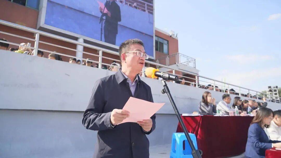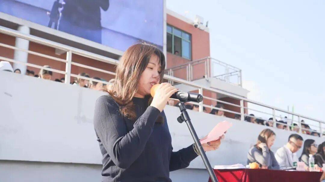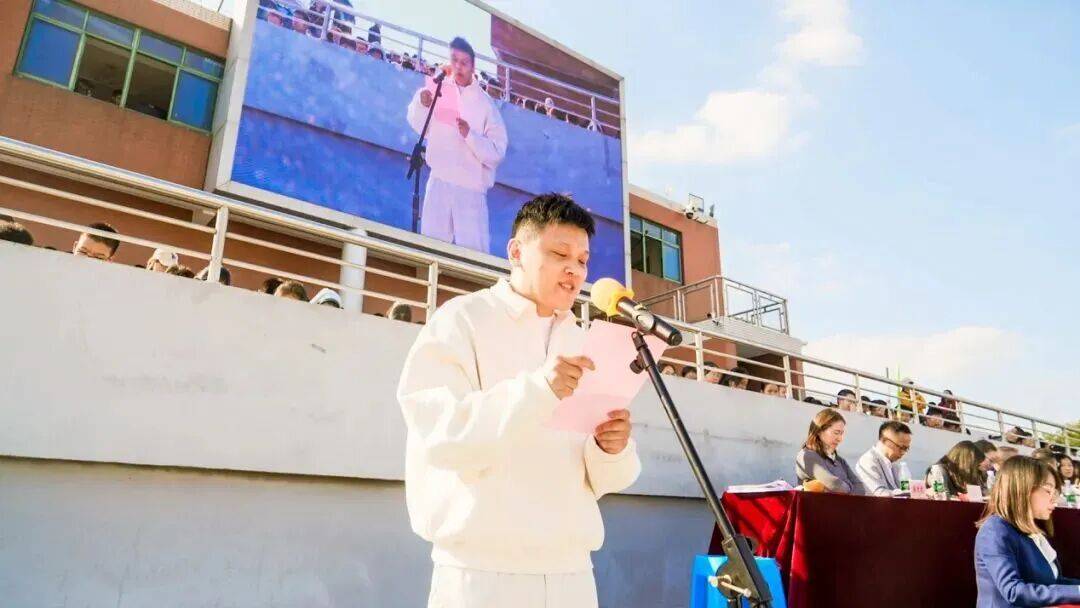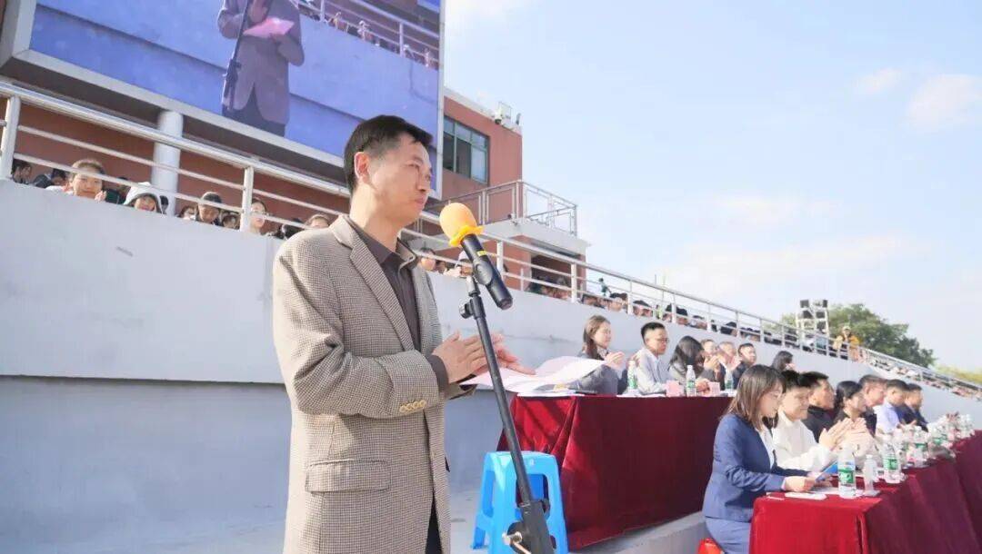 随后初中部校长石爱平老师登台致辞,既回顾学校在体育育人领域的丰硕成果,更深情寄语学子以运动锤炼品格、以拼搏绽放风采;