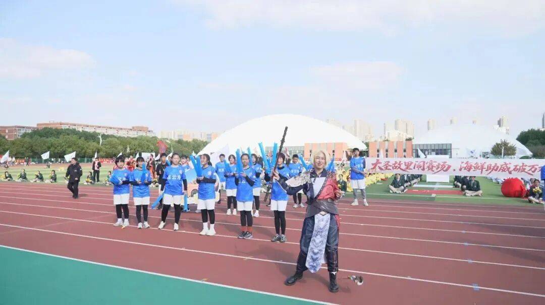 连云港方阵从《西游记》传奇中走来,现场演绎 “点球大战” 点燃气氛,齐天大圣形象登场,同学们将以 “苏超” 拼搏劲展现山海磅礴气势。