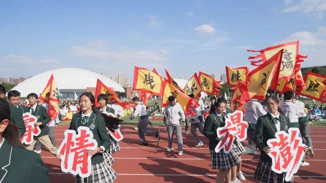 国旗、校旗、会徽、鲜花、班旗方阵依次登场,仪式感拉满。国旗方阵彰显祖国 76 年发展昂扬态势,校旗承载 “嚼得菜根,做得大事” 校训,学生原创会徽凸显23届体育文化节标识,鲜花与班旗方阵则尽显学子活力与班级凝聚力。