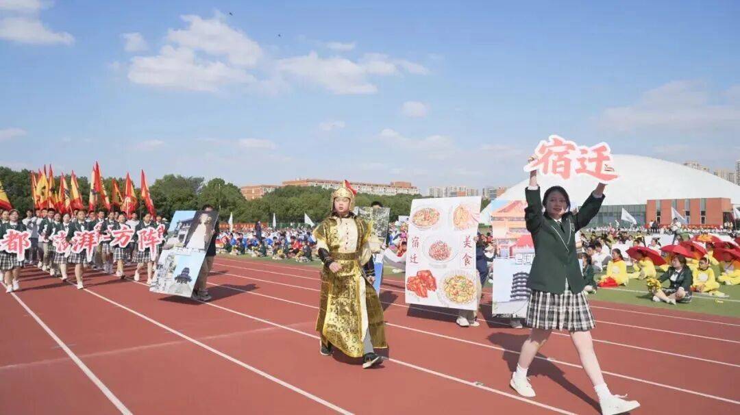 宿迁方阵带着项羽故里的豪迈入场,身姿挺拔如楚营劲旅、步伐豪迈若出征将士,同学们将秉承 “力拔山兮” 豪情书写新时代少年英雄篇章。