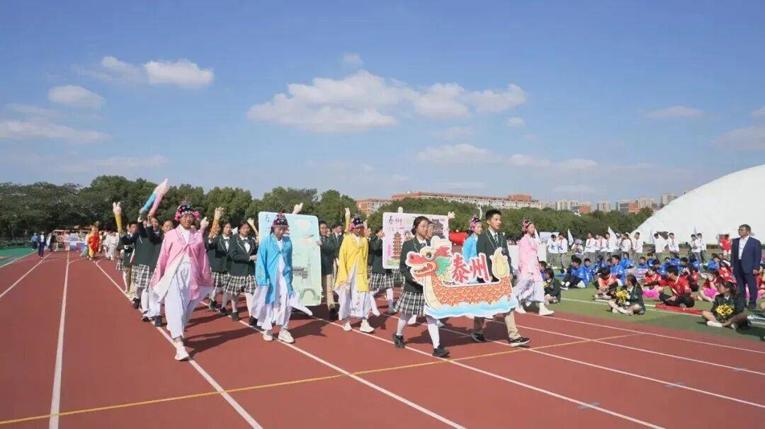 泰州方阵踏着古盐运河波澜入场,梅兰芳戏曲韵味与溱潼会船号子交汇,同学们将以 “泰州学派” 求真精神续写 “文昌北宋” 新篇。